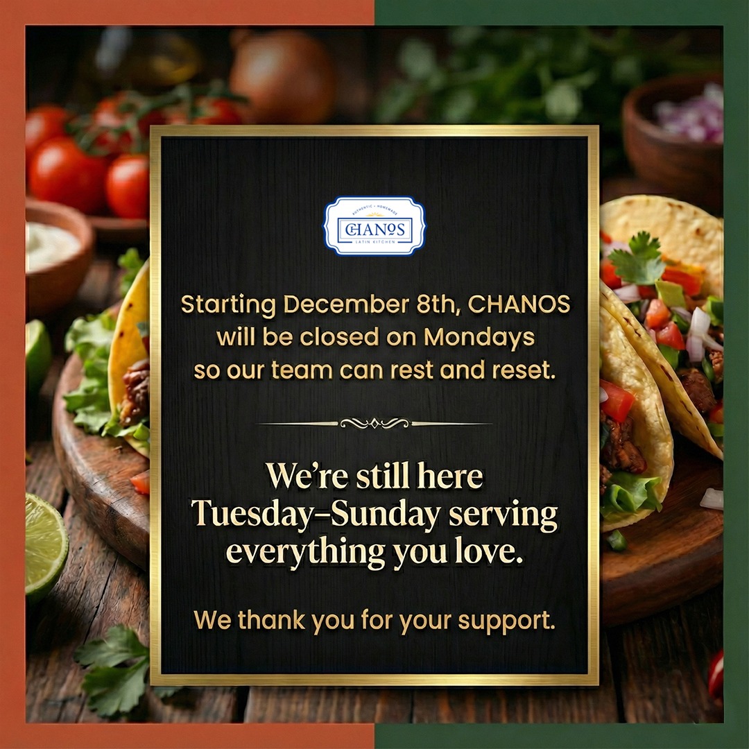 Chanos Hours: Open 7 days, 11 am to 9 pm